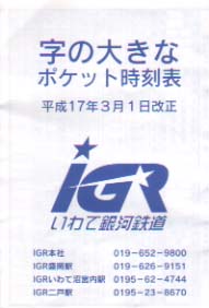 帰りはここから盛岡までの直通のバスを利用(720円)。12時発のがあれば、昼食を盛岡でって出来たんだけど、残念ながら11時発の次は13時発なのでした。行きのタクシー代がちと高くついたけど盛岡からバスで来ると子羊ミルクタイムに間に合わないので仕方が無いでしょう。盛岡駅に着いたのが13時28分。で、盛岡発が14時11分だったので、駅前でもうろつくかと歩きかけたら、でんでんむし号の右回りを発見!出発しようとしてたのを無理矢理止めて飛び乗り。あきらめていた光原社に行けました! さーっとお店の中を見回して、川沿いへ通り抜けて戻ってきてっていうだけだったけど、クルミのクッキー(五個入り、525円)も買えたし、OK!