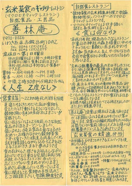 で、上記の展覧会場がどうやら このチラシの善林庵さんらしい。 なんだか興味がある。 いわき市だけど。これ表。